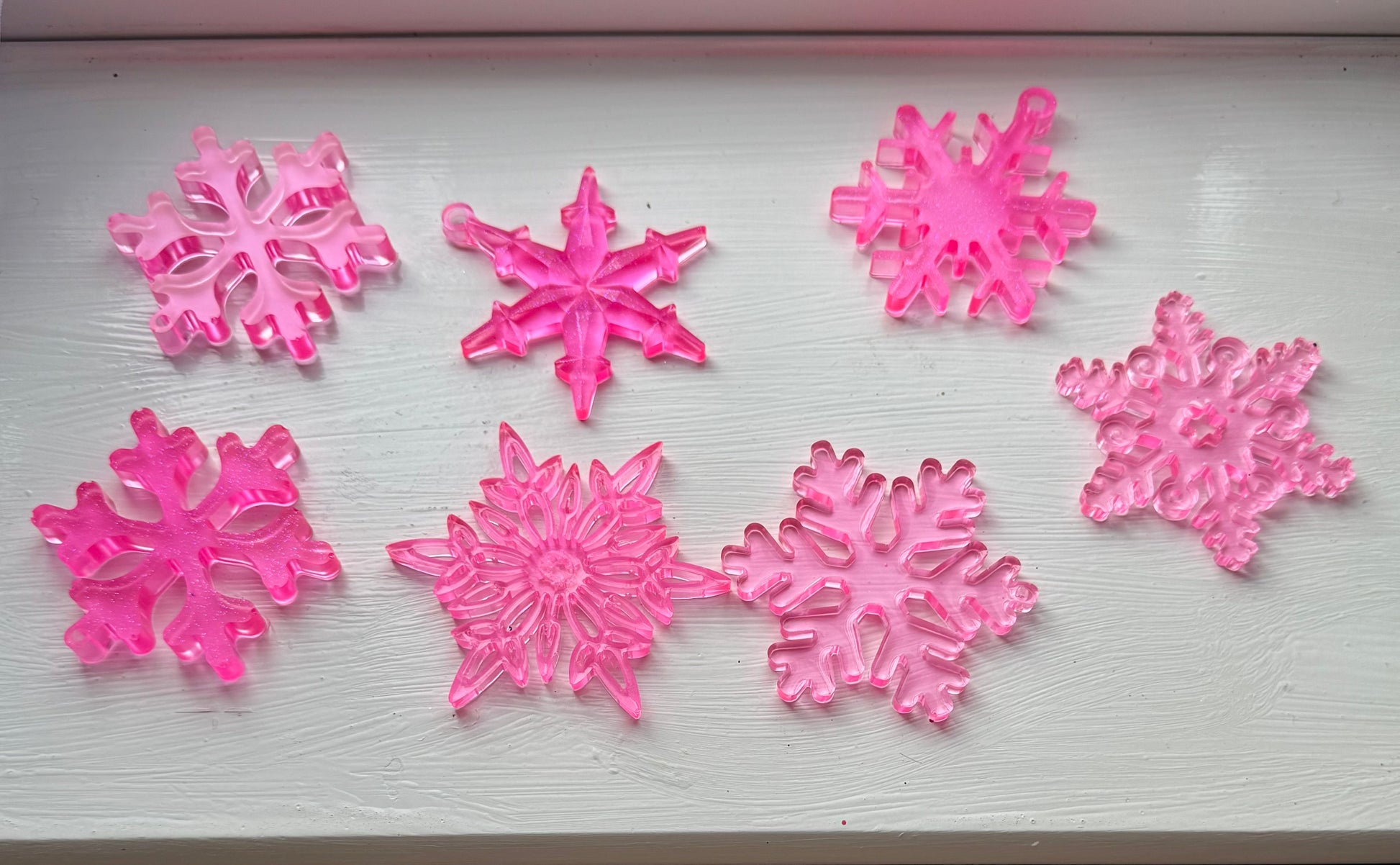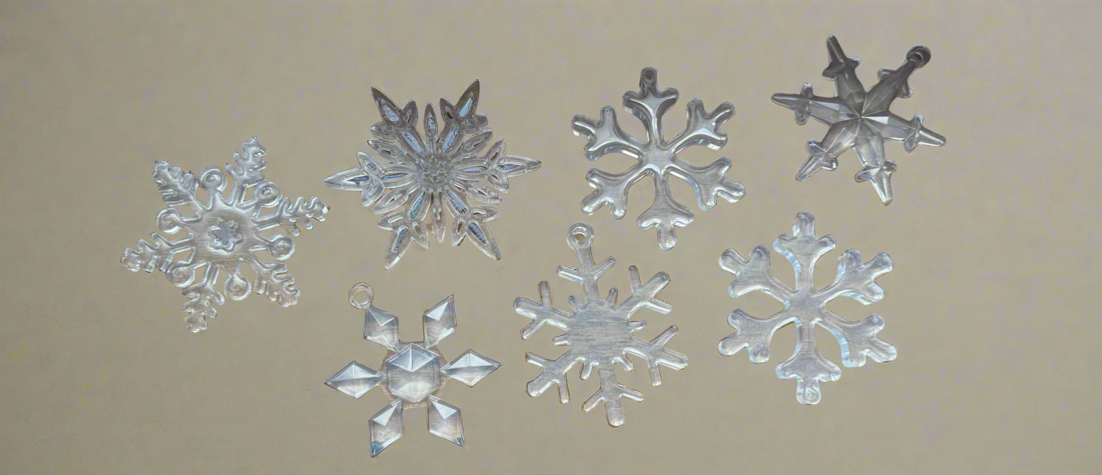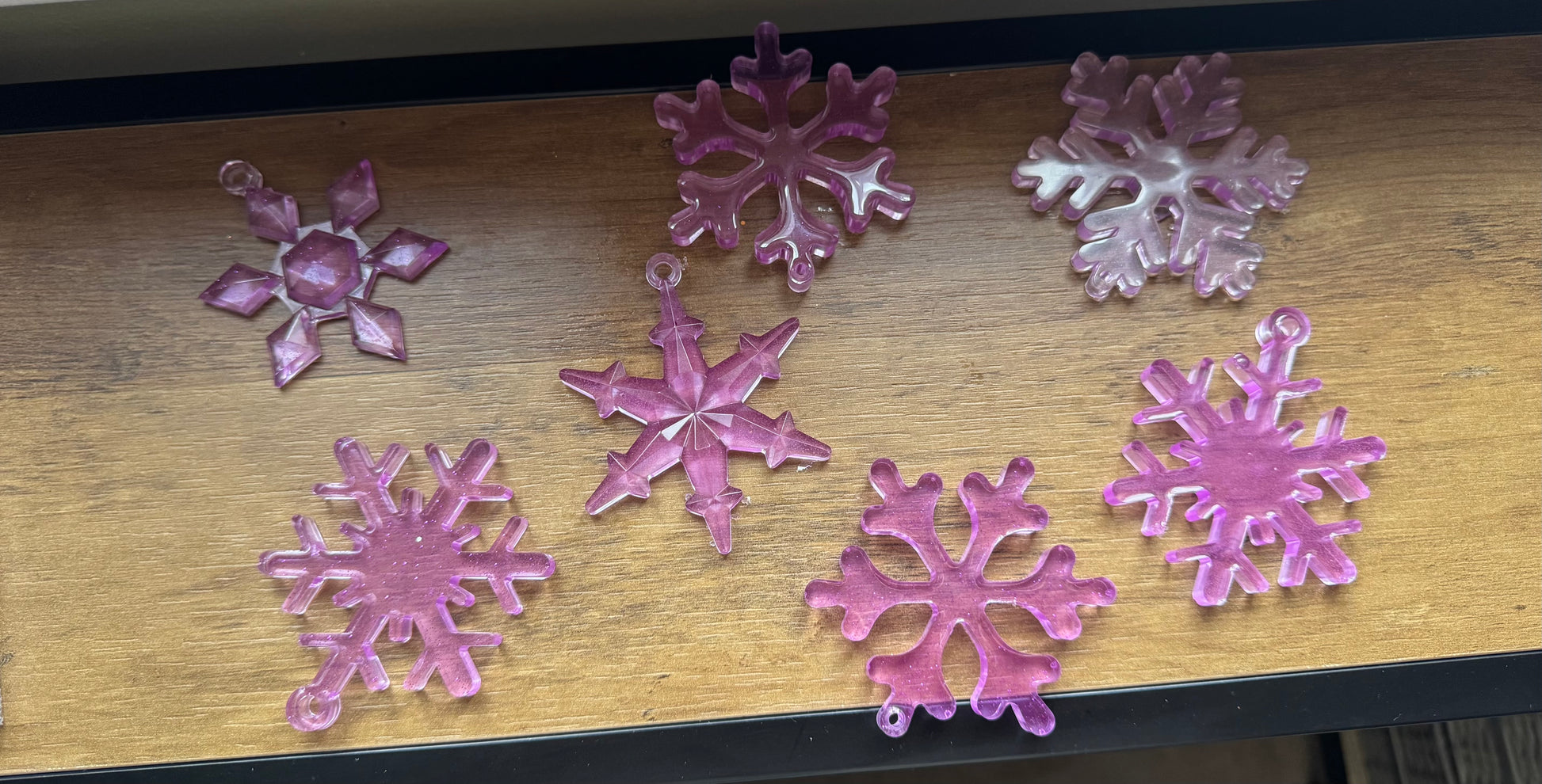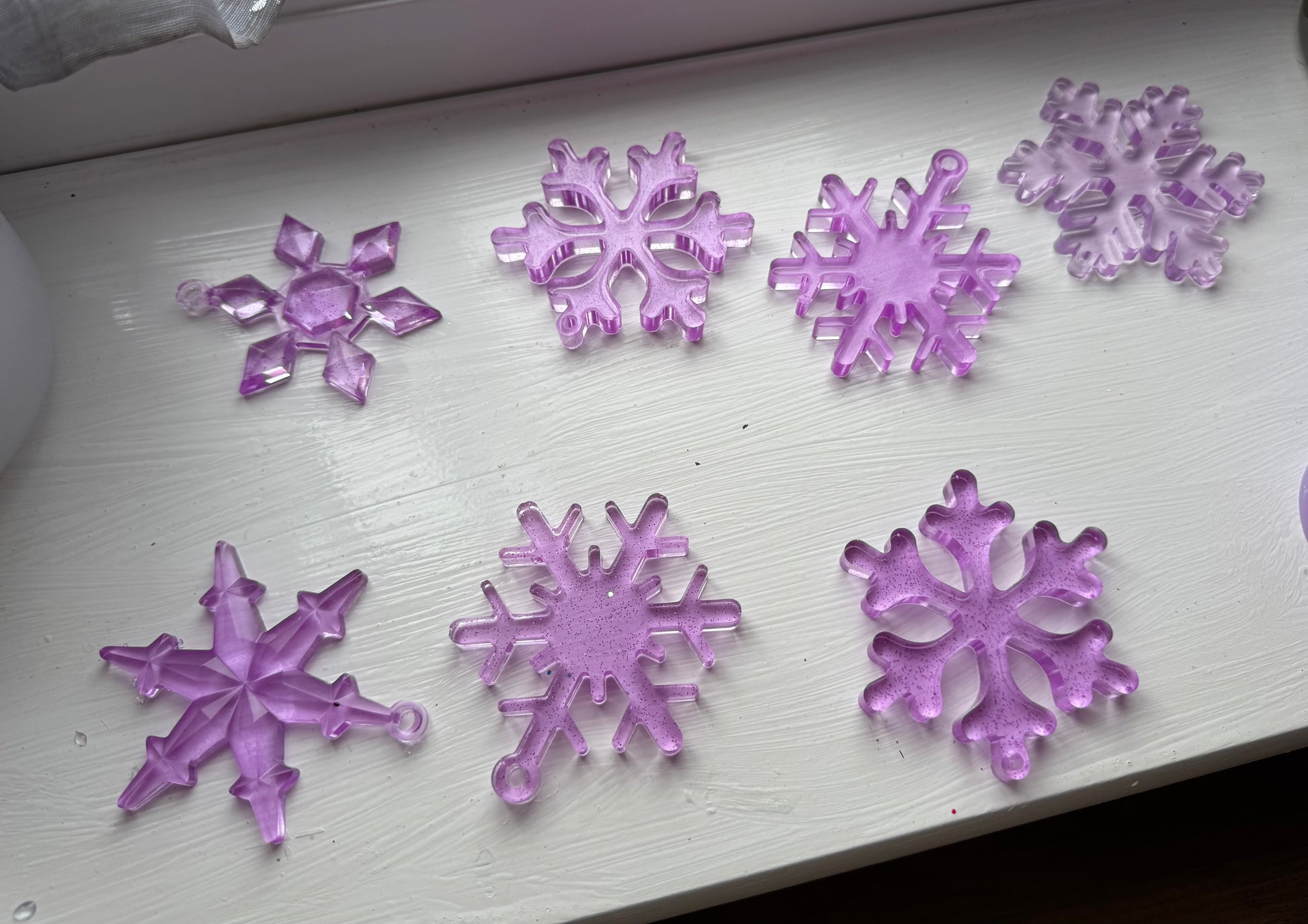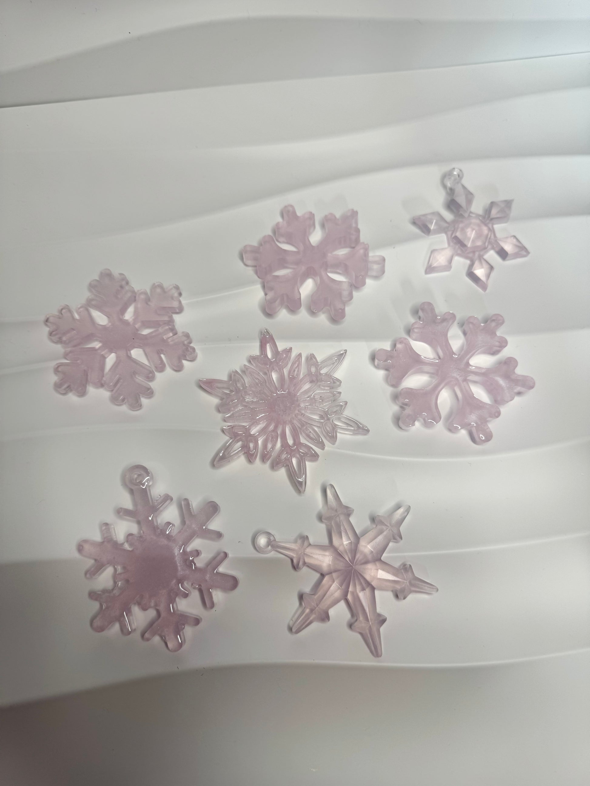 Seven tree decorations. Made with resin.