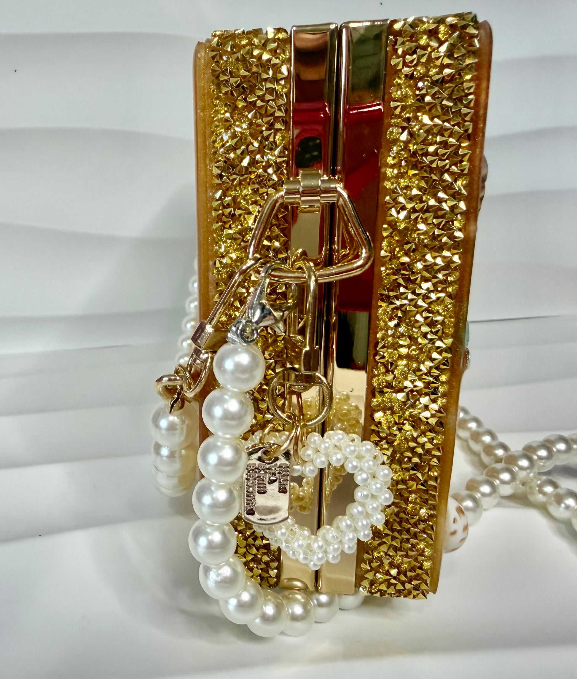 Listen to the whispers of the tide with the Shells and Pearls bag. This handcrafted clutch is a poetic tribute to the ocean, with a serene, sandy background that serves as a stage for an intricate collection of seashells, starfish, and sea turtles. Each piece tells a silent story of the shore, creating an elegant and natural accessory that's as unique as a day at the beach. Occasional use only advised. Comes with it's own dust bag to keep safe and out of sunlight.
